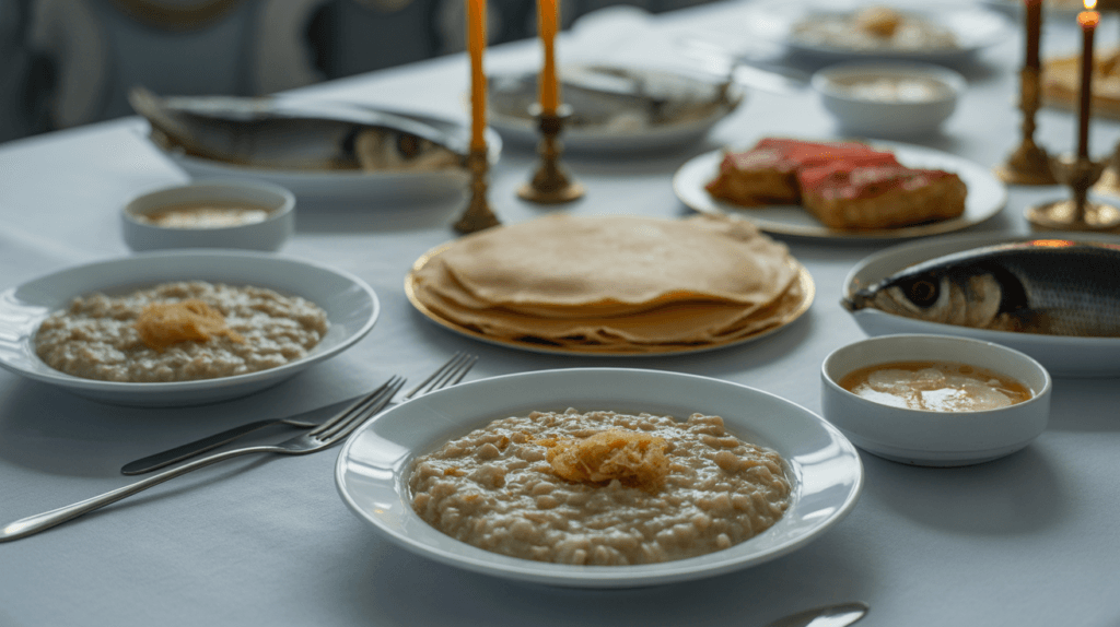 Традиционно поминальная трапеза на годовщину проводится после панихиды в церкви и должна отражать память о покойном через определённые блюда и их подачу. Важно помнить, что это не праздничное застолье, а скорбная трапеза памяти.