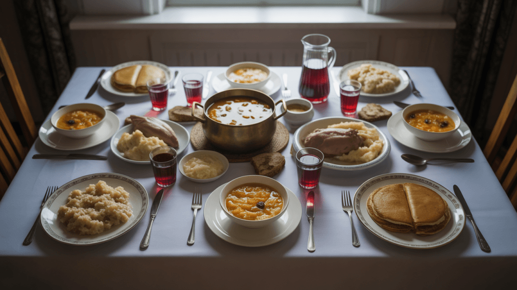 Классическое меню поминального обеда строится по нескольким обязательным позициям. Каждая из них имеет своё символическое и практическое значение.